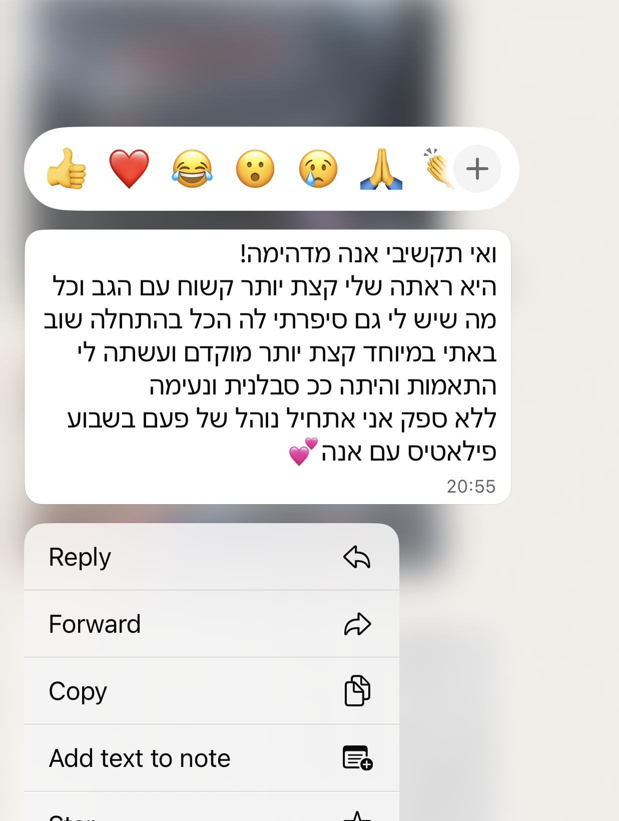 הגעתי לעולם הפילאטיס ממקום של פציעה וכאב ובעיקר רצון עז לקבל חזרה את השליטה על הגוף שלי🤍